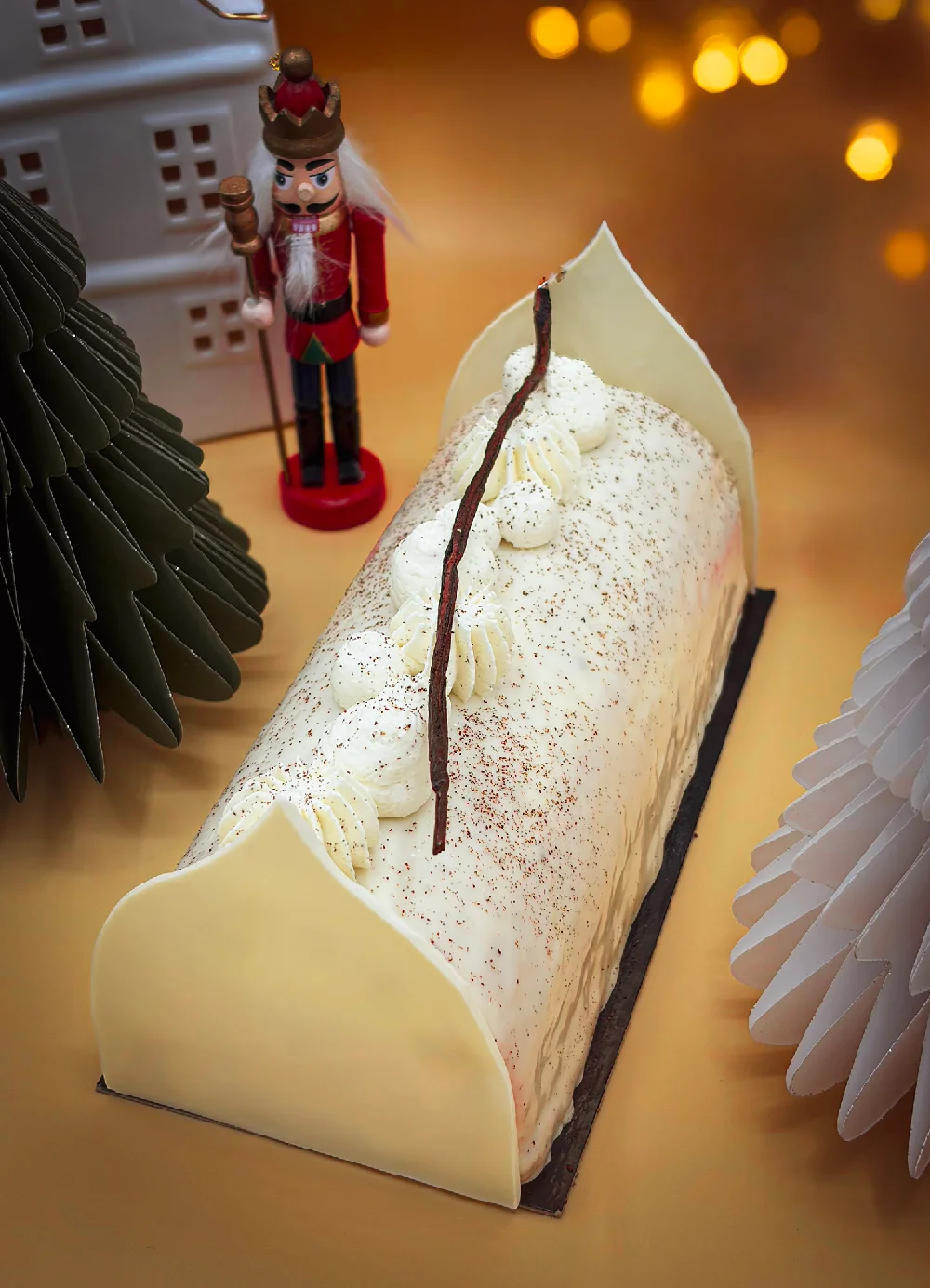 La Maison Constanti célèbre la Vanille à travers cette bûche réalisée à partir d’un assemblage de différentes variétés de vanille : Mexique, Tahiti et Madagascar. Goûtez à la justesse du contraste entre la richesse de sa ganache, et de sa crème de mascarpone.